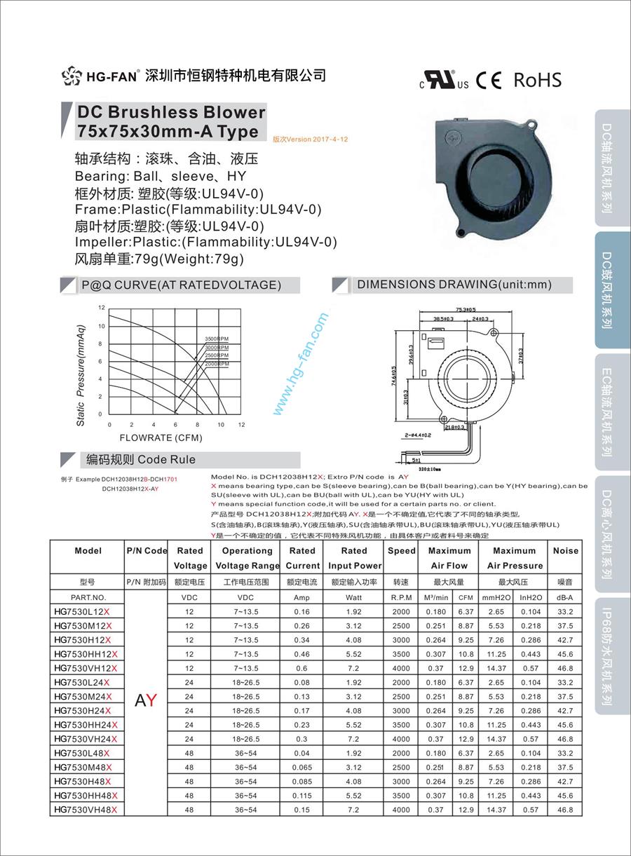 品牌:定制 型号:7530 加工定制:是 电机功率:7.2 w 电压:24 V 电流:0.3 A 风量:12.9CFM 适用范围:广泛 风叶直径:75 mm 转速:4000 目前我司设计开发的静音、低功耗、超大风量、大风压、大功率、大尺寸防水风扇,主要针对于:加湿、讯电源、通讯机箱、工控设备、冰柜、雪柜、变频器、军工产品、潜水设备、船帕部件、逆变电源、工业电源、工业设备等行业和产品设计的,满足客户对于防水散热风扇的需求。