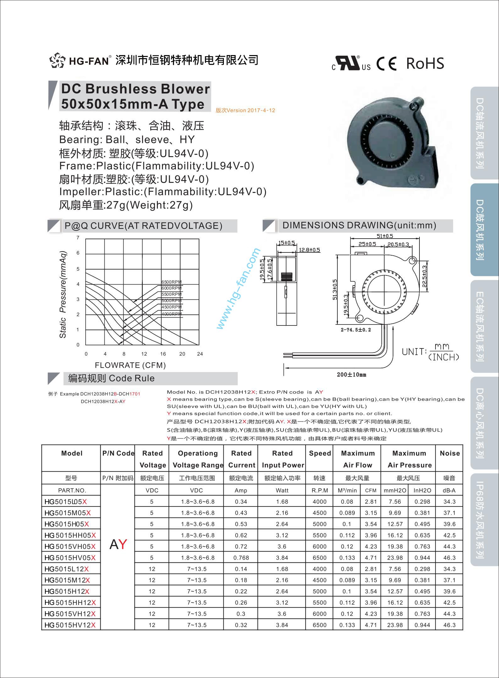 品牌: 5015直流鼓风机 型号:5015 加工定制:是 电机功率:3.6 w 电压:12 V 电流:0.3 A 风量:7.21CFM 风叶直径:50mm 转速:6000 r/min