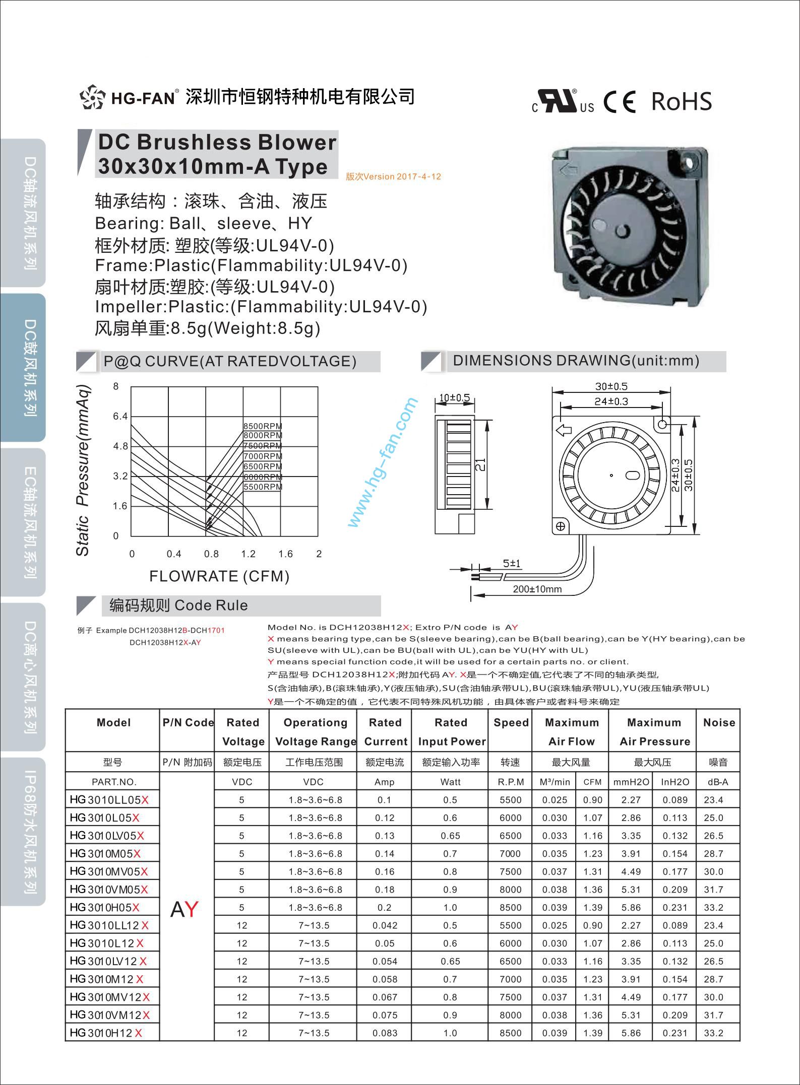 针对微小型、超薄要求的风扇,开发了20*07MM、20*08MM、20*10MM、30*07MM、30*08MM、40*10MM、50*10MM等方形、圆形风扇。