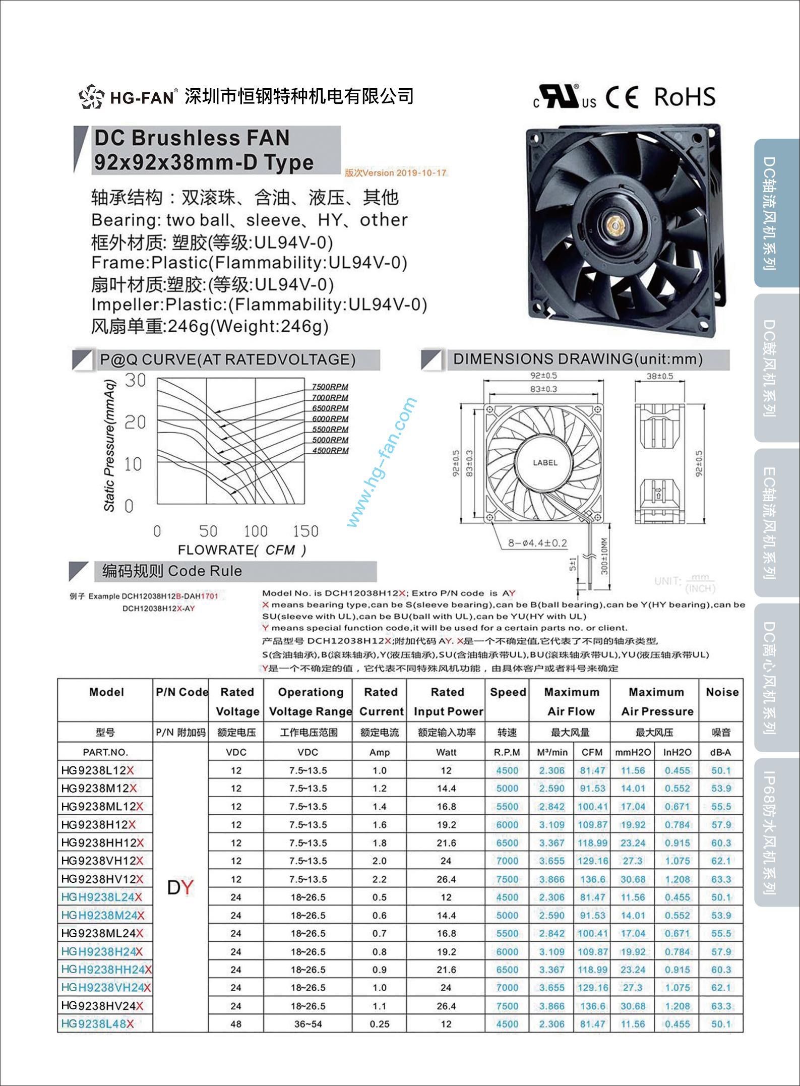 品牌:直流风扇 型号:9238 加工定制:是 电机功率:25.2 w 电压:12 V 电流:2.1 A 风量:144.28CFM 适用范围:广泛 风叶直径:92 mm 转速:7000 9238防水风机 等级IP68