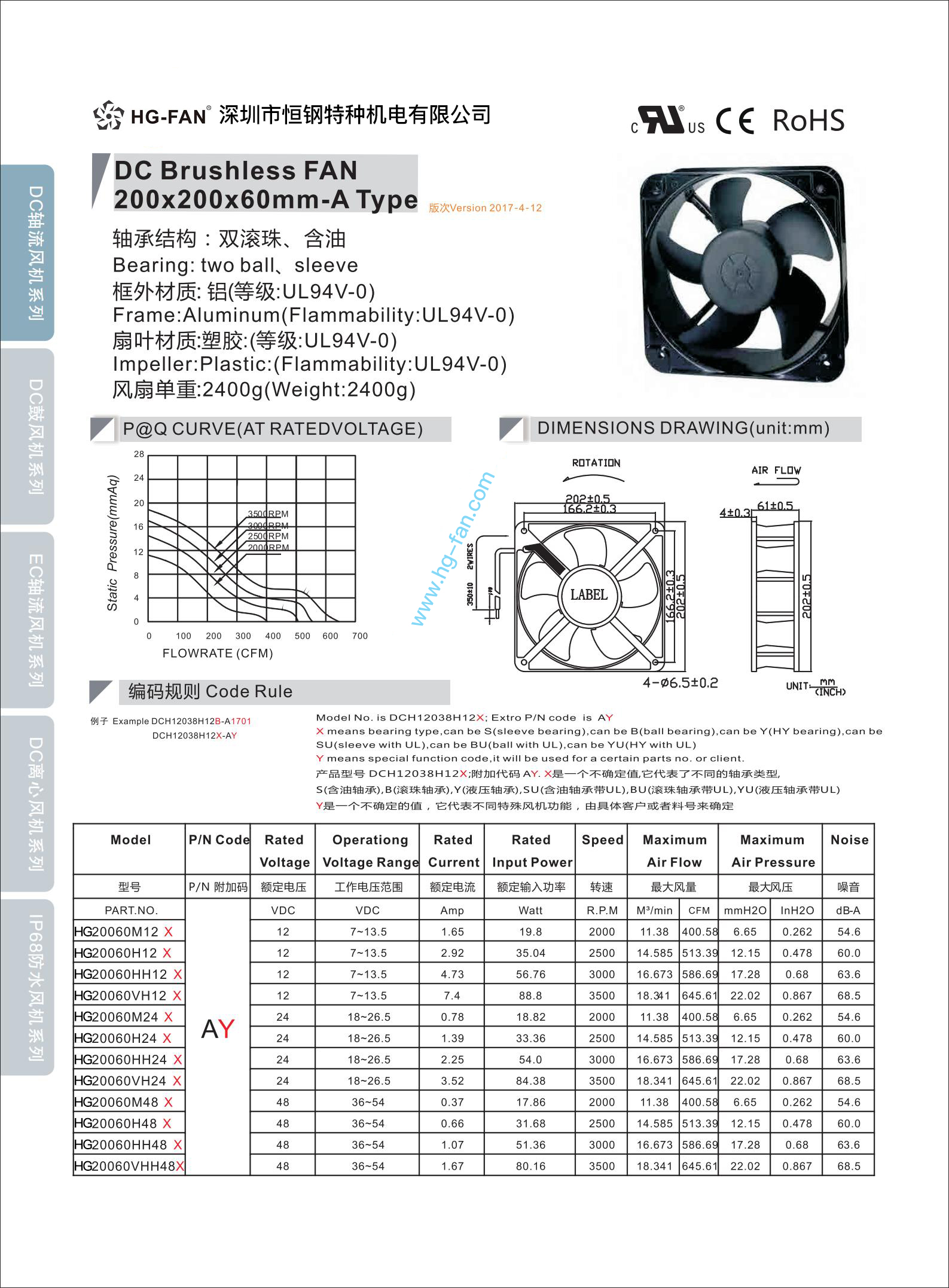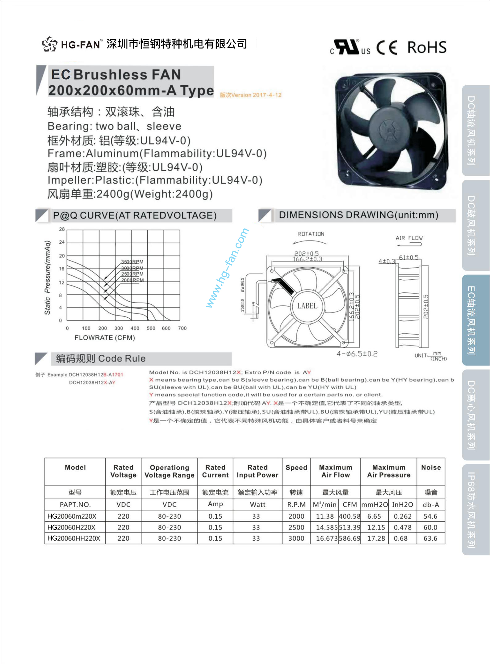 恒钢致力于大尺寸大功率大风量散热风扇研发、设计、生产,我们的研发团队开发了40x40x28mm 40x40x56mm 60x60x38mm 60x60x25mm 70x70x38mm 80x80x38mm 92x92x38mm 120x120x38mm等增压结构大风量大风压风扇,这些增压型风扇特点是:超大爆力风量、超大风压、超长使用寿命,大量在:工业电源、通讯机柜、工业设备、厨房、制冷设备、通讯机站、纺织行业、变频器行业等工业领域使用,同时为了满足各种工业、通讯等、新能源客户要求,我们的研发、工程、设计团队开发行业的马达全密闭灌封创新工艺,