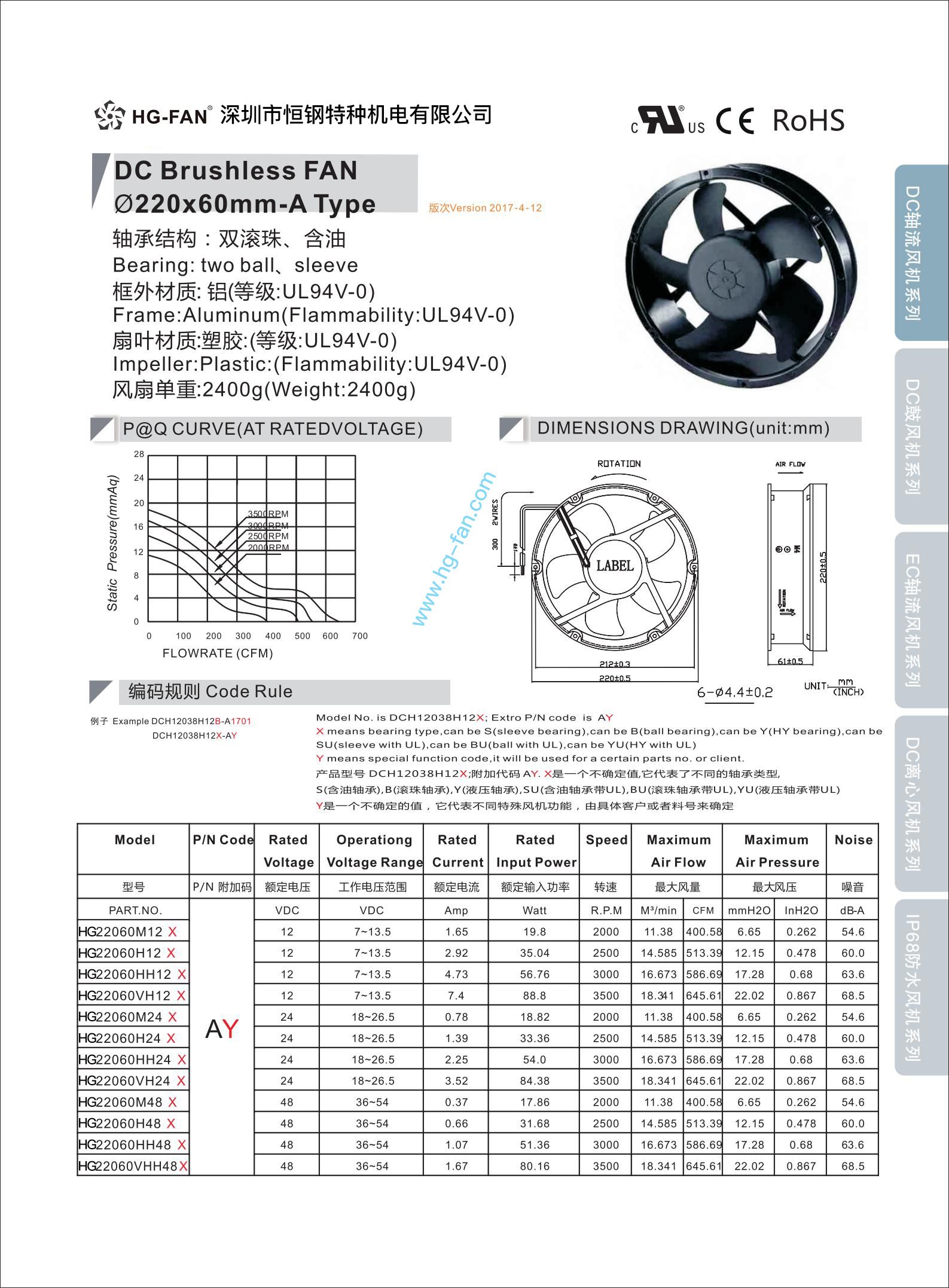 恒钢致力于大尺寸大功率大风量散热风扇研发、设计、生产,我们的研发团队开发了40x40x28mm 40x40x56mm 60x60x38mm 60x60x25mm 70x70x38mm 80x80x38mm 92x92x38mm 120x120x38mm等增压结构大风量大风压风扇,这些增压型风扇特点是:超大爆力风量、超大风压、超长使用寿命,大量在:工业电源、通讯机柜、工业设备、厨房、制冷设备、通讯机站、纺织行业、变频器行业等工业领域使用,同时为了满足各种工业、通讯等、新能源客户要求,我们的研发、工程、设计团队开发行业的马达全密闭灌封创新工艺,