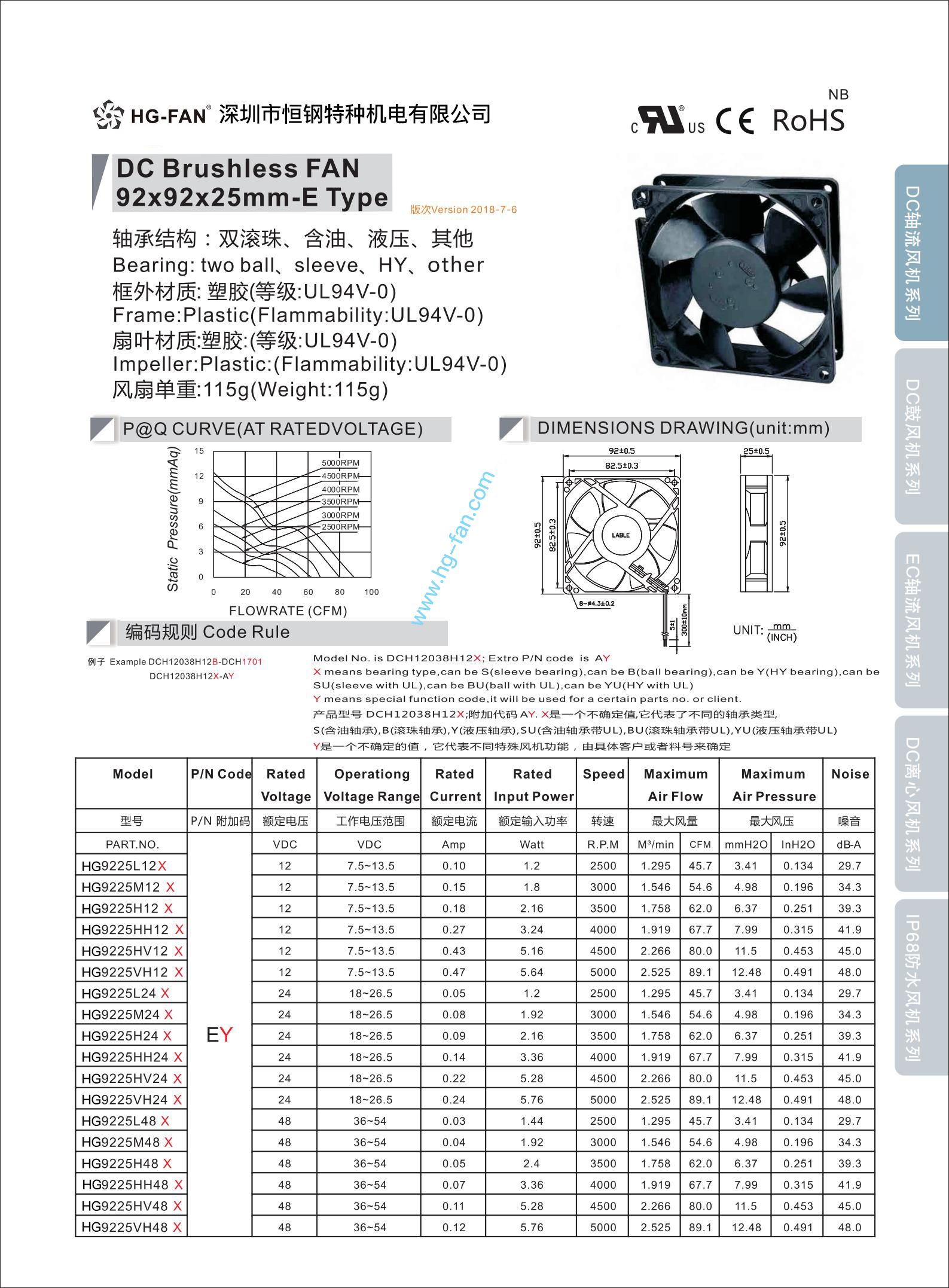 品牌:散热风扇 型号:9225 加工定制:是 电机功率:3.84 w 电压:12 V 电流:0.32 A 风量:73.5CFM 风叶直径:92mm 转速:4000 r/min ①9225不锈钢滚珠防水灌胶方案