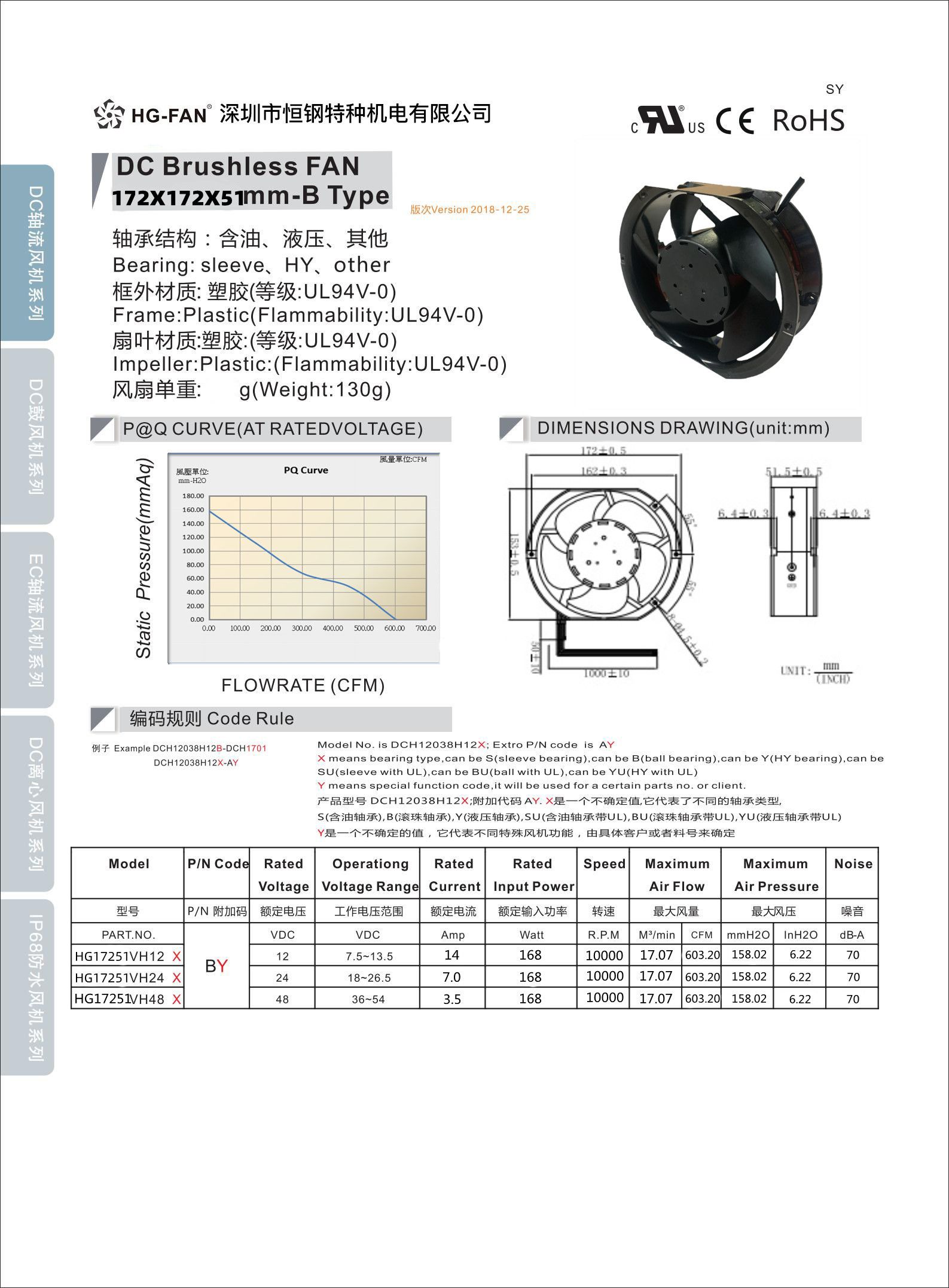 品牌:防水风扇 型号:17251 加工定制:是 电机功率:72 w 电压:24 V 电流:3 A 风量:283CFM 风叶直径:172mm 转速:4000 r/min 17251防水直流风扇 IP68防水风扇深圳市恒钢特种机电有限公司是国内散热风扇为数不多的自主研发 自主开模的散热风扇生产商自主研发的模具,我司新近研发开模的9733鼓风机只有本公司一家使用,并会有专门的维护,并不断的改进 ,在扇叶的平衡性和降低噪音方面有很大的提高,使用寿命也就更长了。综合性能比一线品牌提升20%-40%可完美替代一些进口品牌如台达,NMB 日电产,建准,永立,ADDA。