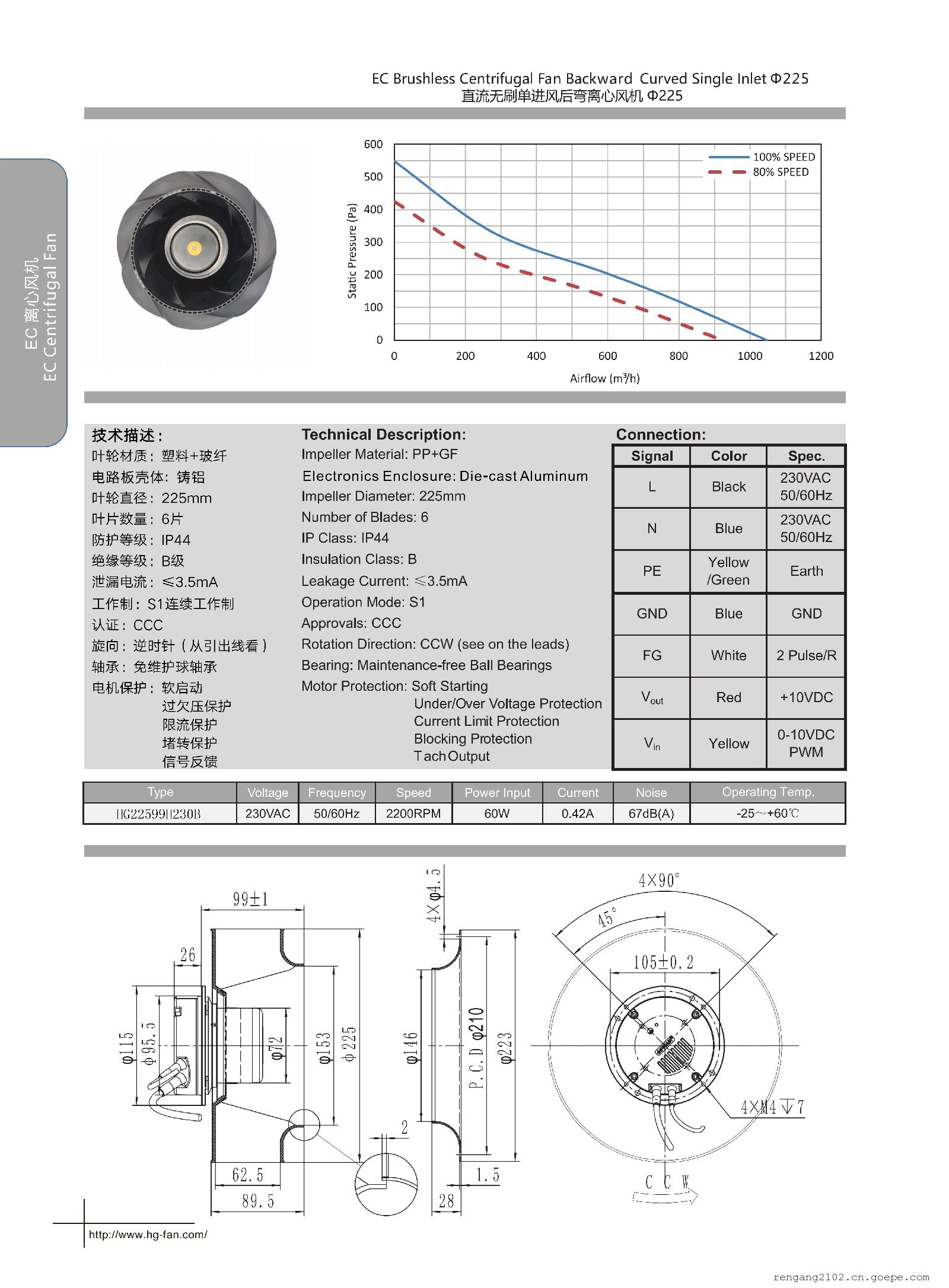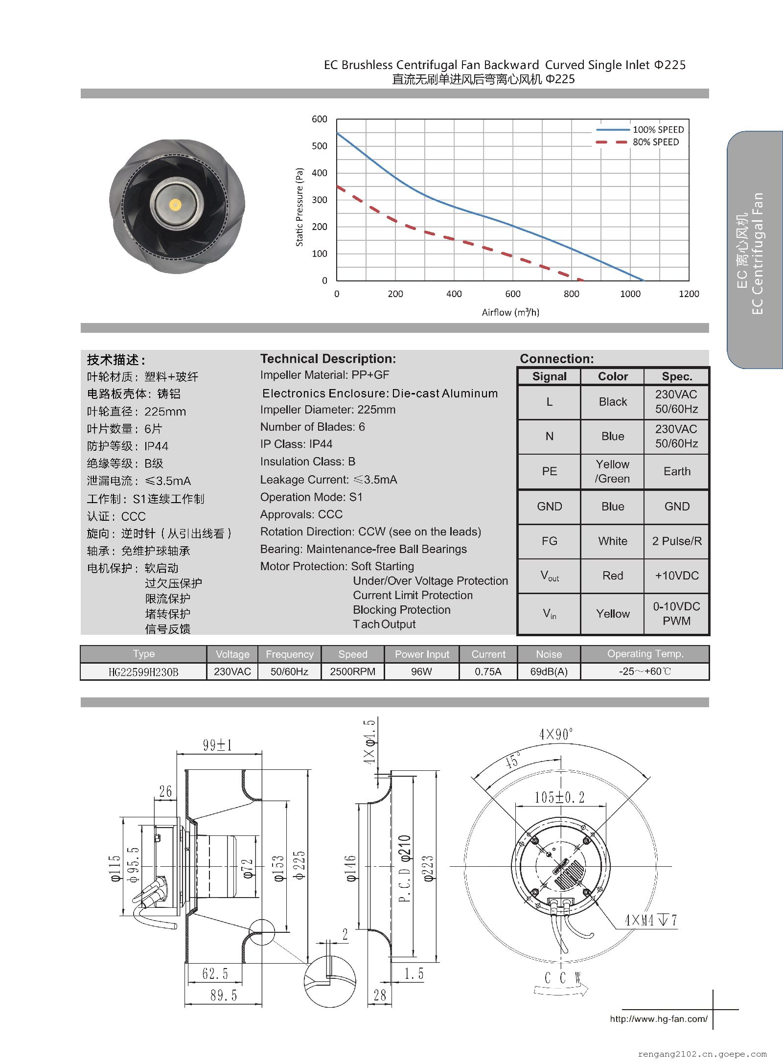 - KFB2348HHU冷藏冰柜机22599离心风机 IP68离心防水风扇225*99mm