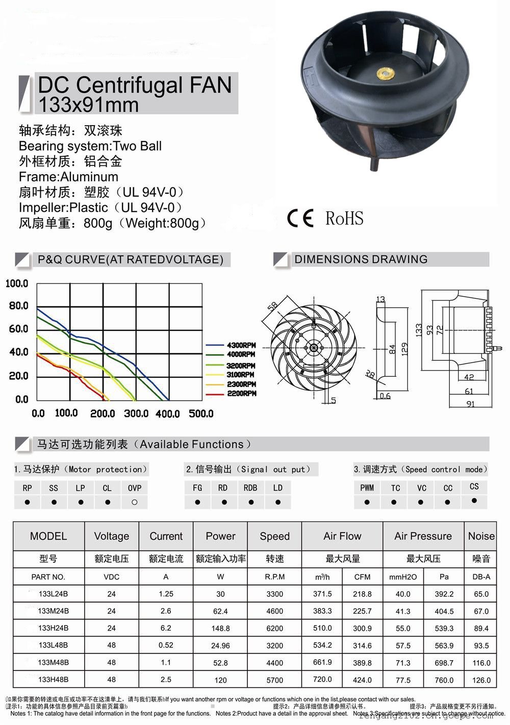 针对客户对于大风量、强吸力、大风压的风扇要求,开发了40*28MM、60*38MM、80*38MM、92*38MM、120*38MM、254*89MM等轴流风扇,48*25MM、50*20MM、97*33MM、120*32MM等鼓风机,Ф100MM、120MM、150MM等离心风机;